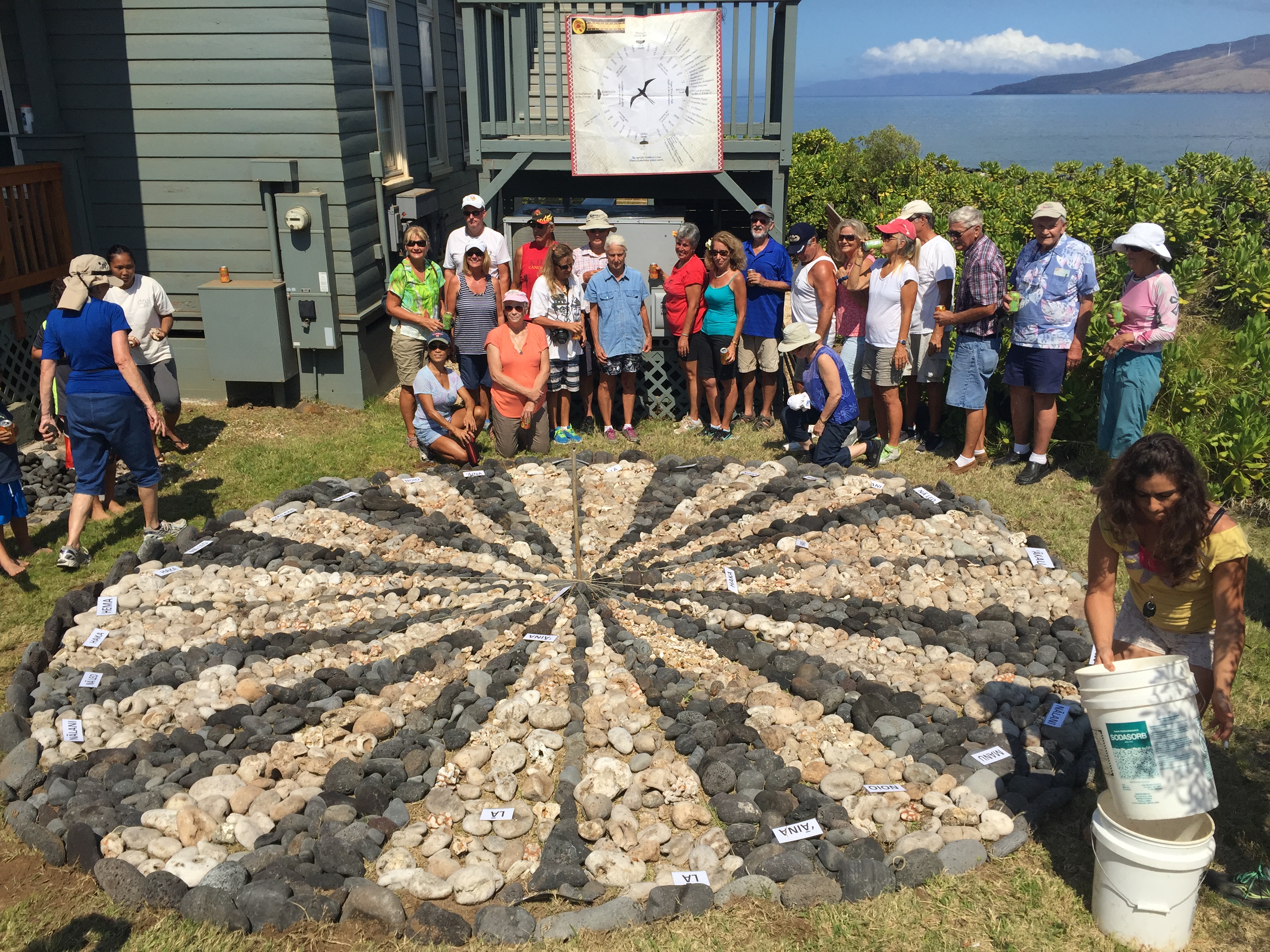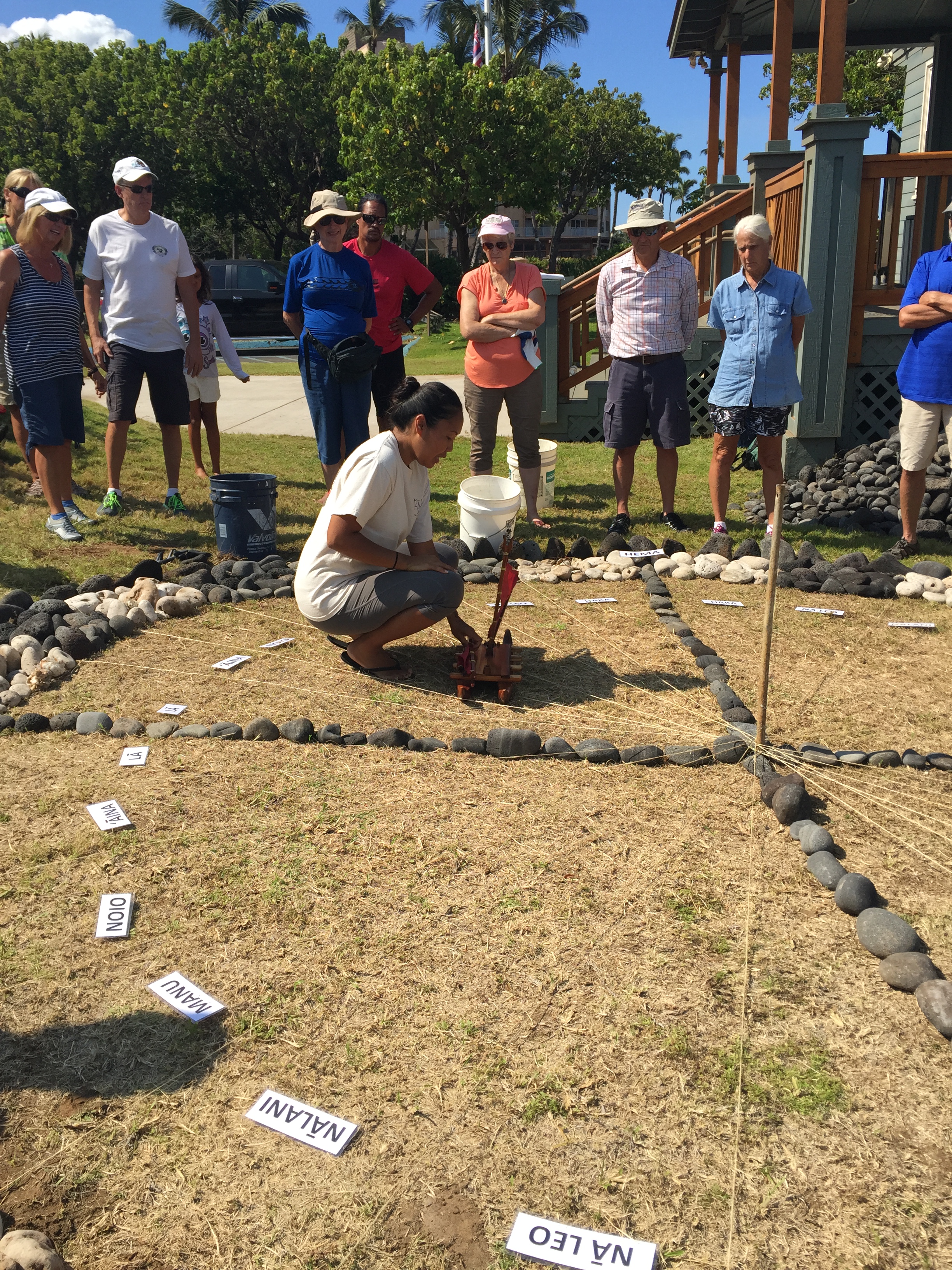 Anyways, we went out on the outrigger canoe to surf some waves and ultimately collect some white coral rubble that would be used to create our navigational chart. Black lava rock was also collected, but those were found on river beds. Anyways, I had such an amazing experience setting up this permanent chart that would be built. Today, was finally the day to construct it. A famous navigator, Kala Baybayan, came to the sanctuary to teach about her experience navigating the famous canoe, the Hokulea, all the way from Hawaii to Tahiti. This feat was competed in 15 days, without the use of any technology. Just her knowledge of the stars, swells, and ocean. It is seriously fascinating learning about navigation and traditional knowledge. I highly recommend you check out the famous Hokulea. It is an important educational tool, reaching out to over a billion people worldwide that are following her journey.