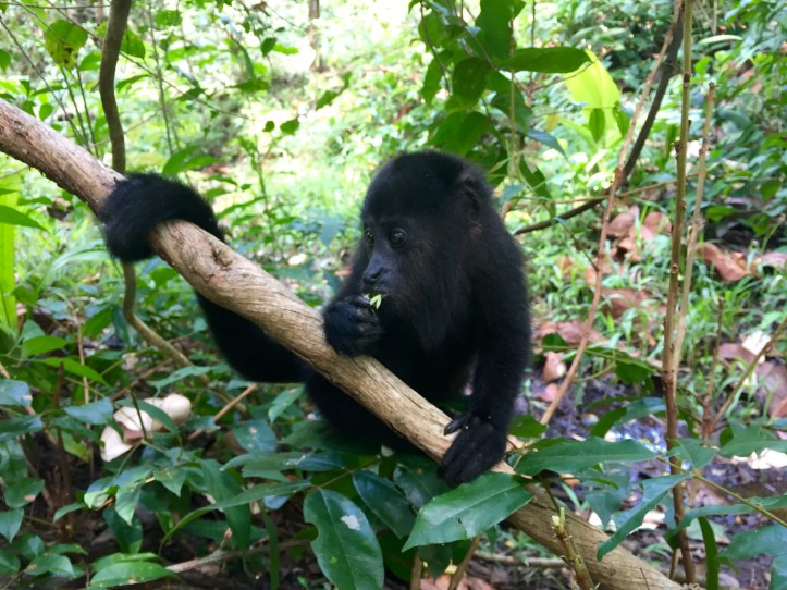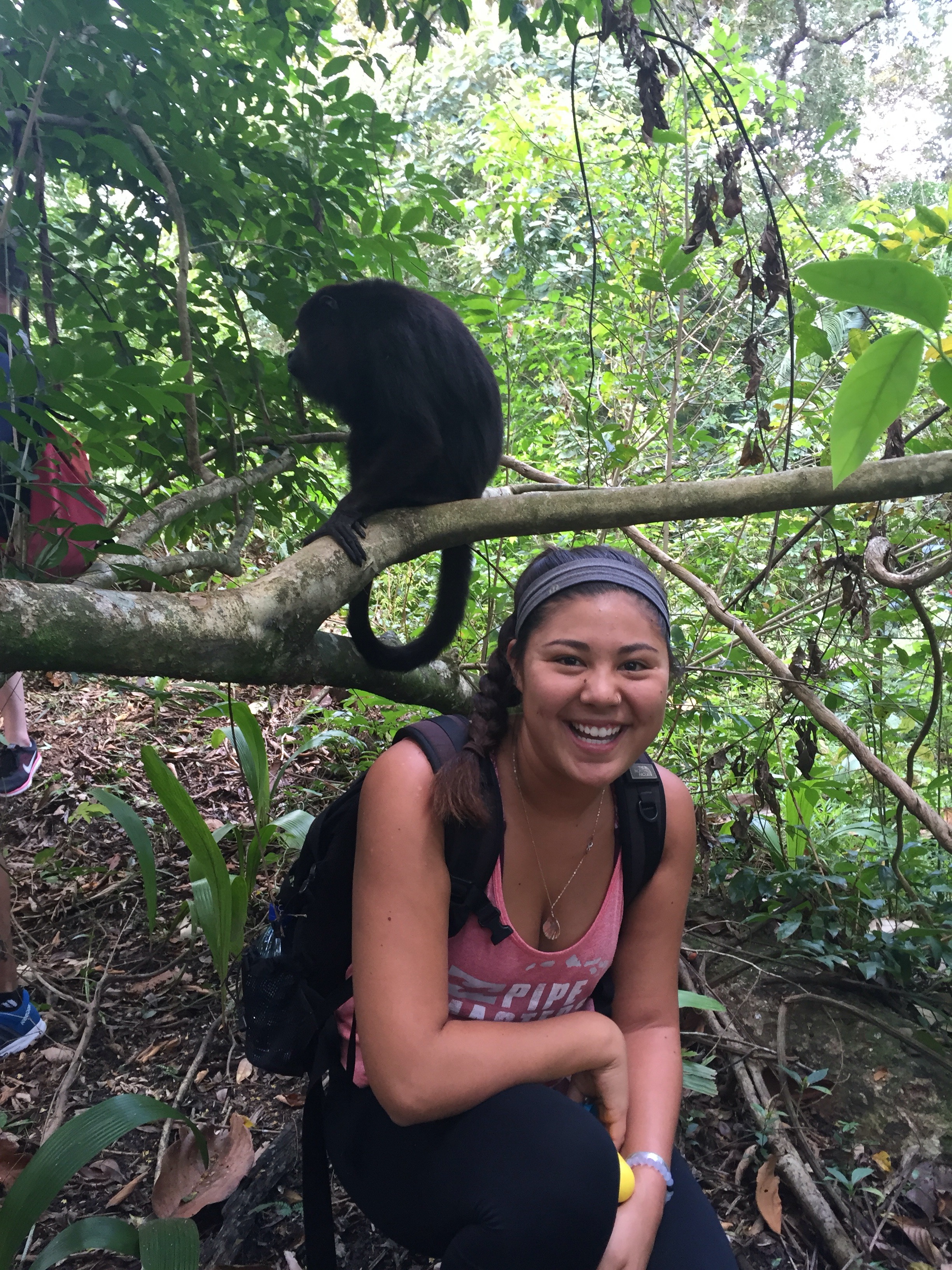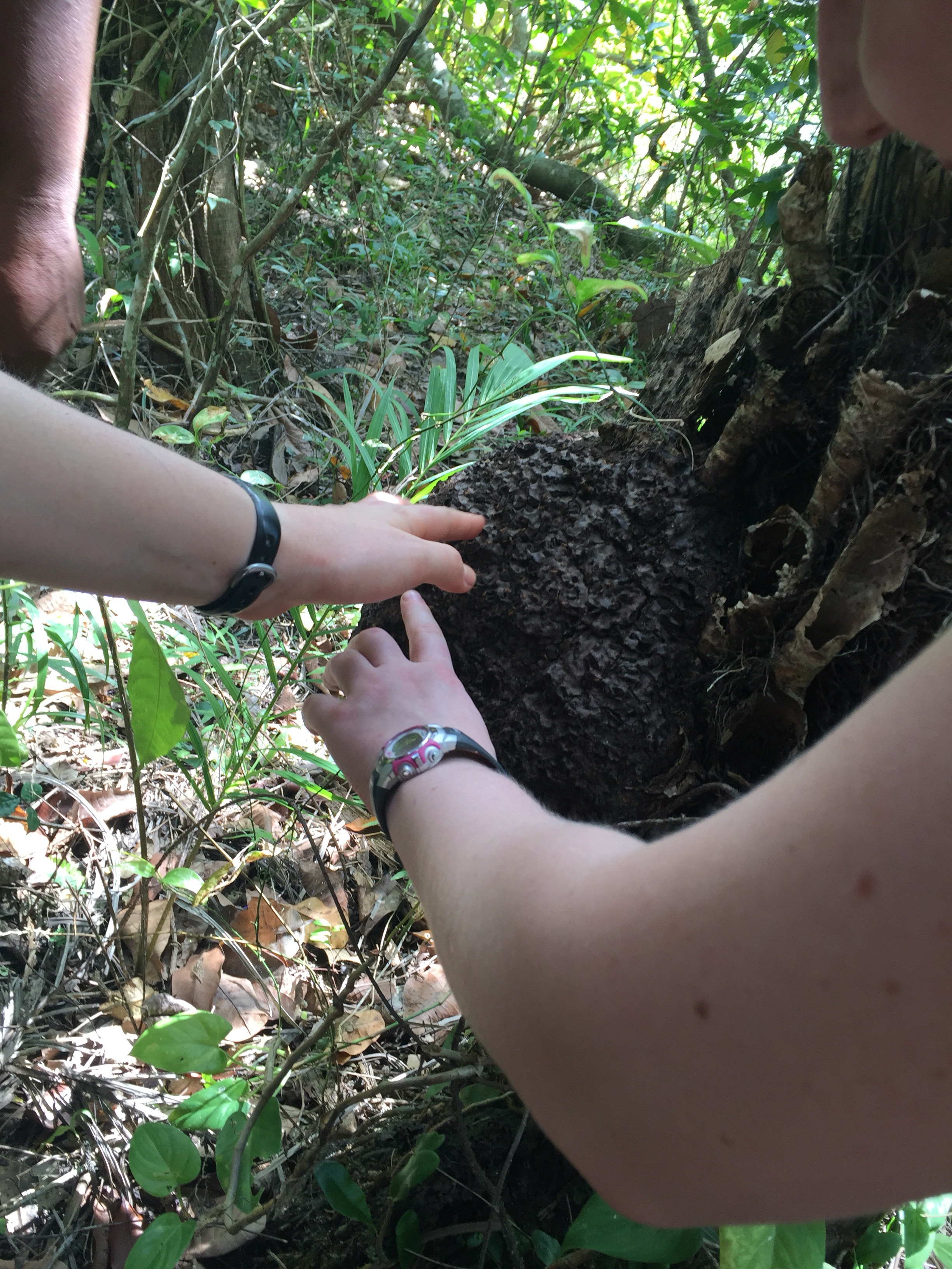 Day one in Belize and I already have played with monkeys and have eaten some termites. I am so happy I had this opportunity to spend a little time out of the country. I applied for a service trip to Kentucky my sophomore year through Dickinson, and I think everything happens for a reason because I was rejected but it’s ok because this trip to Belize is so much cooler. Traveling here was pretty fun, because I haven’t really traveled in a large group since going to Costa Rica. I’m pretty used to traveling alone and I kinda like making my own decisions and doing my own thing. But at the same time it was also nice to let others figure out where the terminal is and all those logistics. We departed Dickinson at 3 am on Saturday morning, and drove together to Philly. Next, we flew to a layover in Texas so I’m pretty sure that was a first time in that state! We had a semi-delayed flight but we filled our time playing cards. We got to Belize around 5 pm, met the Peaceworks Volunteer Organization who drove us to the grocery store than to our “home” in Bermudian Landing, at a small hotel called the Jungle Resort. We had a delicious belizian dinner of the classic beans and rice, chicken, and plantains. Yum! With homemade carrot cake for dinner. In the evening we reflected about our day and then I fell asleep at like 9 pm. The next morning I woke up pretty early to workout, and then we had a quick breakfast. We had a pretty big chunk of time free today so We walked next store to the monkey sanctuary and had an educational guided hike. Our tour guide, Geraldine, was super knowledgable about all the local plants and taught us all about the medicinal values and nutrition (reminded me of my time I’m Tanzania studying Maasai wild food plants). She taught us all about the monkey sanctuary and how the community has come together to protect the land from deforestation and vow to not clear cut the trees used by monkeys. We walked on a path in the jungle where we saw wild growing pineapple, cashew trees, fig frees, mahogany trees, and a ton of other cool plants. Geraldine also mimicked the call of a male howler monkey to try to find one of families in the forest, of course with success. We saw five howler monkeys that came literally an arms distance away. It was low key terrifying because I didn’t want one to like jump on me, but it was all good. There was even a tiny 10 day old baby! It was so cute. Another huge highlight of this hike was trying termites. Our guide described them as a crunch of a carrot but with a minty taste and she was 100 percent correct. They were actually pretty good which sounds so weird, but I’m totally glad I tried them!