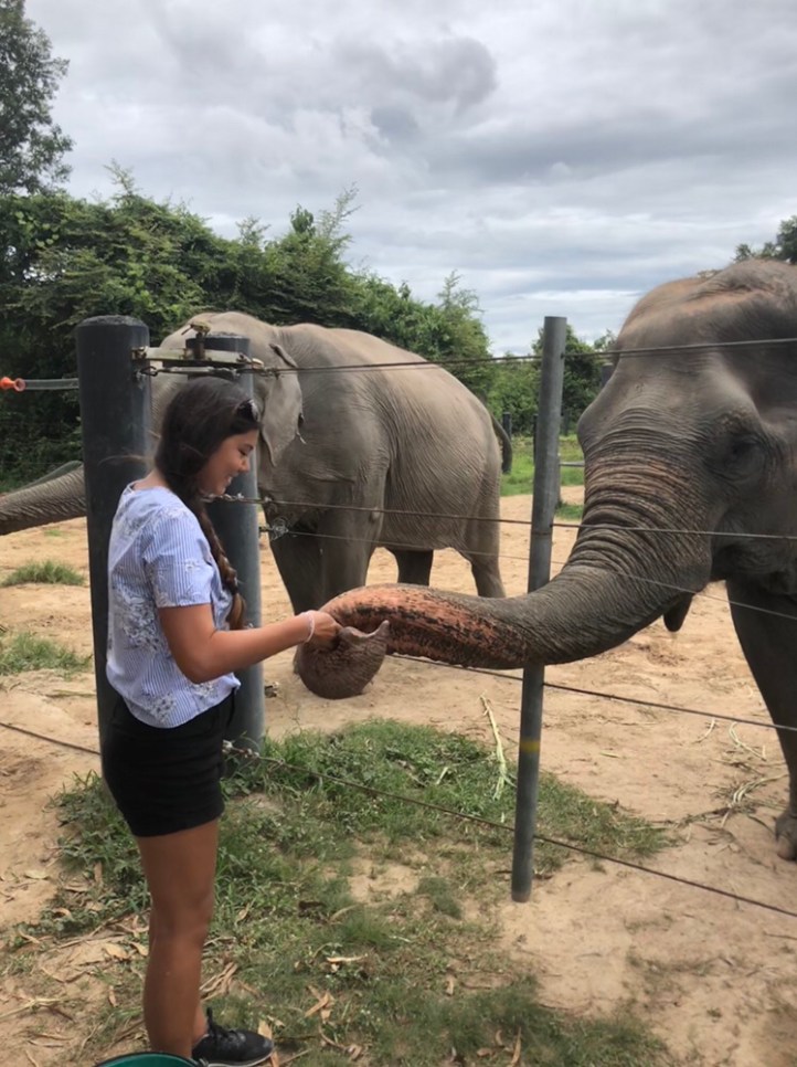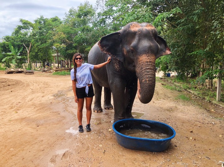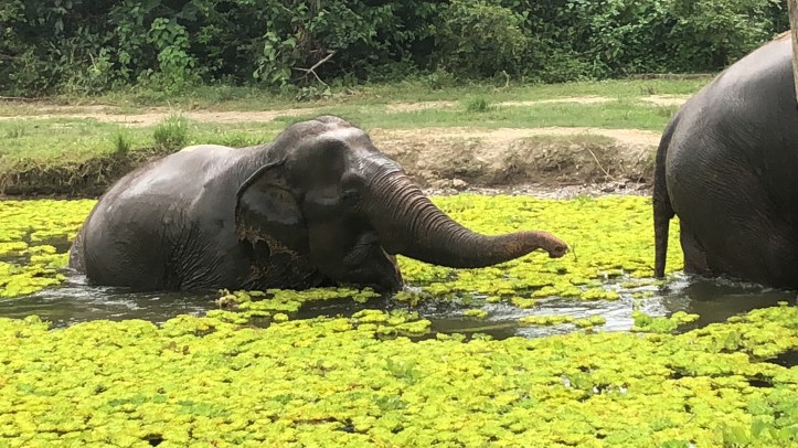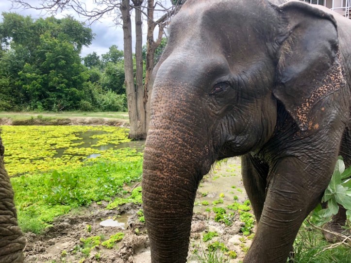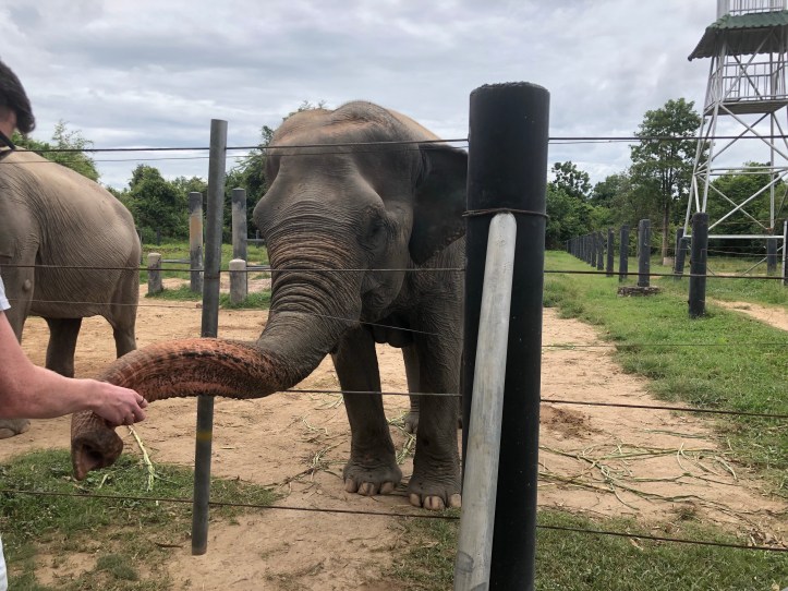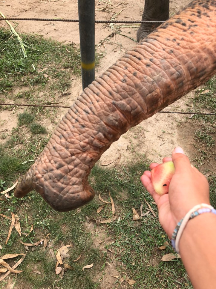At noon we had a wonderful buffet breakfast With some delicious vegan options. The lunch place was right next to some elephant enclosures which was pretty cool. Then the rest of the afternoon was dedicated to elephants. I was able To feed some, which i has a blast with. We have them pineapple and watermelon. Next we helped bathe them, by rinsing them off and scrubbing them down. They had so many elephants, from elderly ones to babies. One of the highlights was seeing them swim to cool down, they just looked so happy and full of life. These elephants are living their best lives, despite a history of abuse. If they don’t want to go somewhere or do something, they aren’t forced. If they appear scared of humans they are put in a huge field away from where people go. And if they crave attention from humans they’re allowed to be visited by the tourists who visit daily.