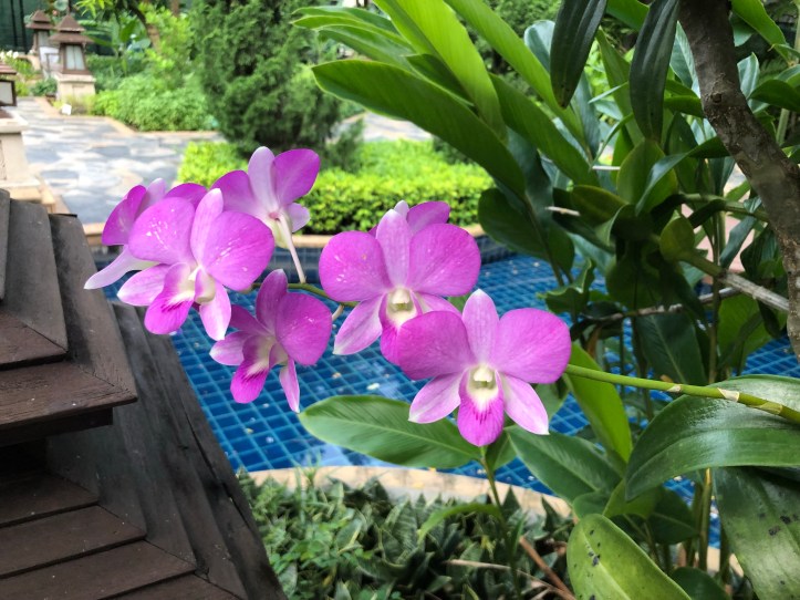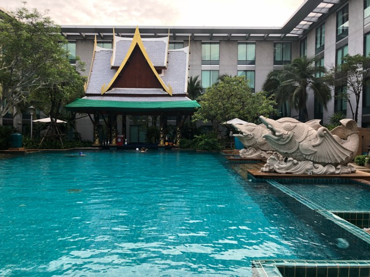 I departed Saudi and headed to Bangkok on August 7th, on a pretty harmless flight from Oman Airlines. The flights were only about 9 hours, with a quick layover in Muscat, Oman. I arrived in Bangkok st about 6 PM and had a super easy time going through customs (free entry for US passports), then grabbed my first pad Thai of the trip in the airport, then found my shuttle to the hotel. My parents arranged a stay for two night right across the road from the airport at Novotel. It was sooo nice, and convenient. In the evening I looked around a bit at the fitness center, pool, and amazing gardens.
