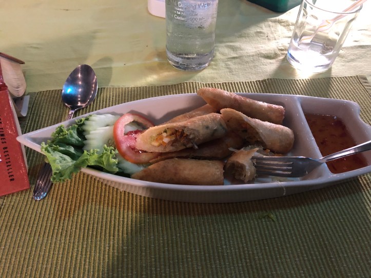 I was able to walk around and take photos and enjoy the view of the city. This temple is called Wat Arun (temple of dawn) which is right across the river from the famous reclining Buddha temple. For the rest of the evening I walked around and shopped, saw some smaller temples and statues, and grabbed a delicious dinner of vegetable spring rolls and tofu pad Thai. To get back to my hotel I took a motorbike to the subway station, and the subway brought me all the way to my hotel. It was super easy, cheap, and convenient.