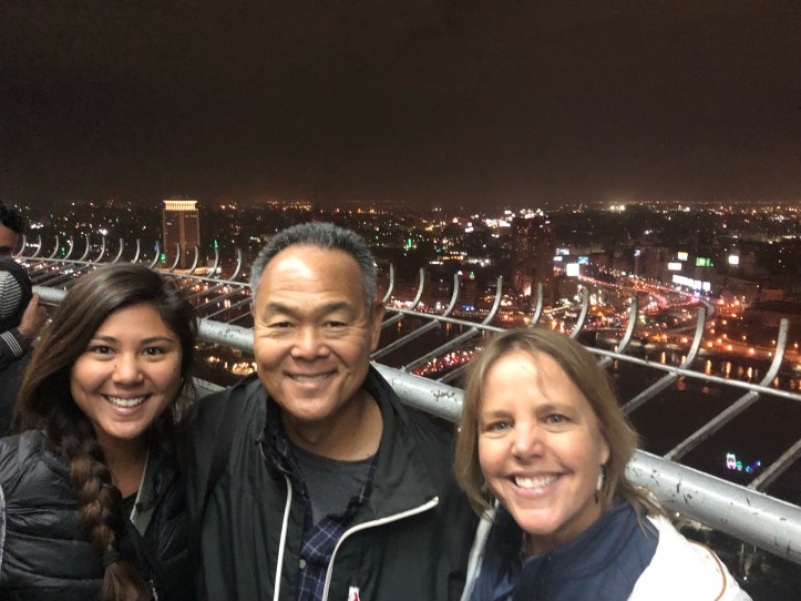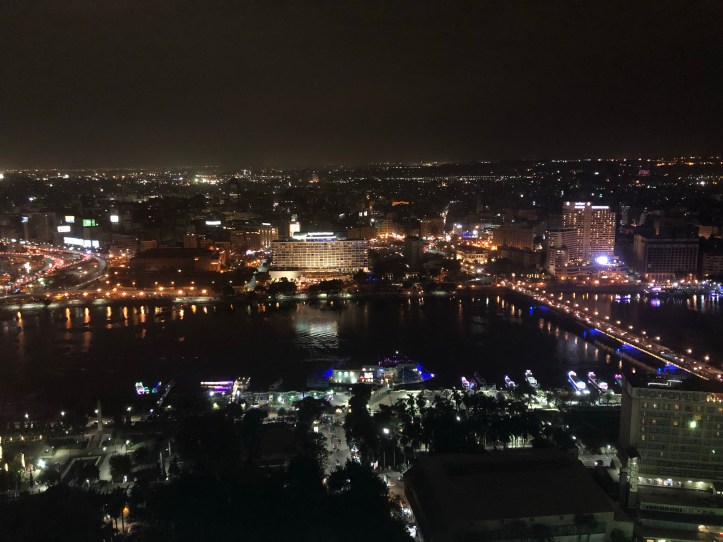 It was a lovely evening and a great way to see the views of Cairo. After the boat trip, we went to the Nile Tower, which is a very tall building overlooking the Nile and you can see all of Cairo from here.