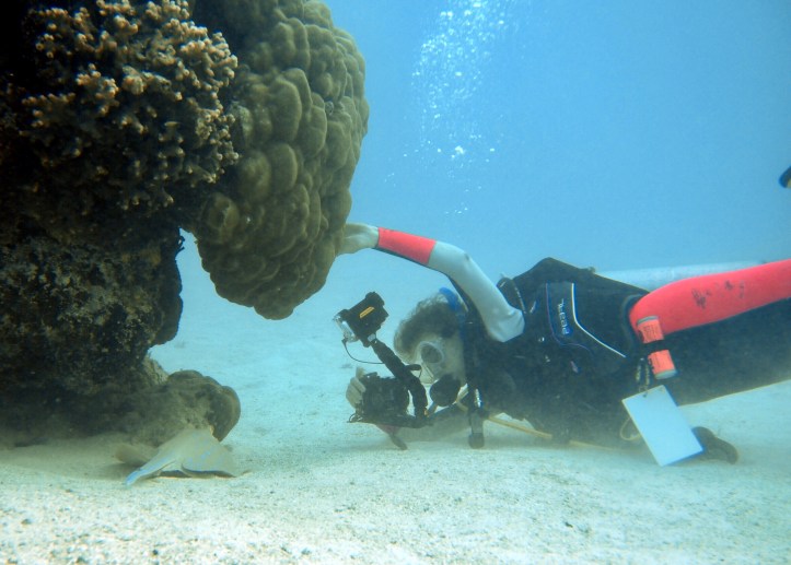 Unfortunately, the lagoon was pretty shallow with strong currents so our transects were a struggle. There were points where the currents were forcing us up against coral walls as we were trying to collect data and photos, so that was a hilarious struggle. In the afternoon we went to a deeper site for a little fun dive and took some pics.