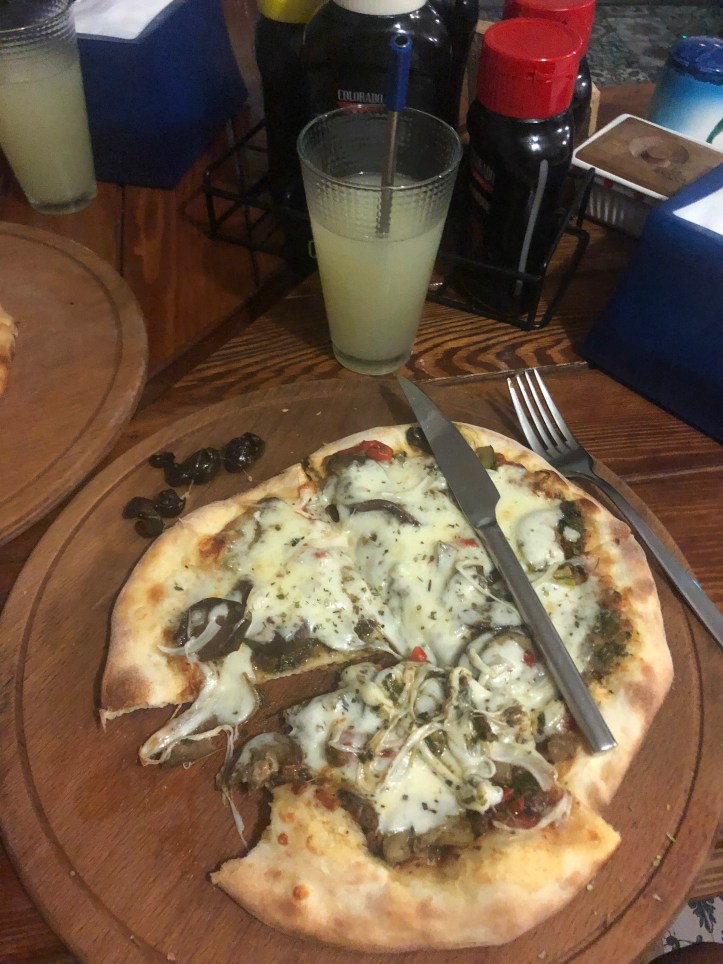 After spending an hour here we headed back on the bus to go back to the hostel.  We rested, googled how to get to Pamukkale the next day.  We also did a quick google search on vegetarian food nearby.  We found a really good restaurant just 5 minutes away, called Rocca.  Their vegan and vegetarian menu was amazing highly recommend. We both got pizza and lemonade. After dinner we packed up our belongings and got ready for yet another early morning!