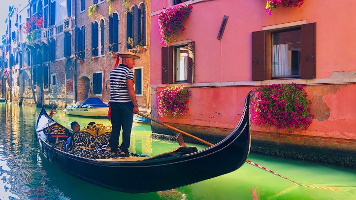Another day one highlight was a gelato I bought and then enjoyed sitting alone on a tiny canal watching boats whiz by. It was super relaxing and I was very happy. At around 6 I started getting hungry again, and found my favorite restaurant of the whole trip. I really think this is a hidden treasure, it’s called Ristorante Povoledo. It’s located right on the grand canal and has some pretty spectacular views. I went right on time and had a perfect corner table. I also wanted to add that if there’s anyone who is ashamed to go out to eat alone really should go out of their comfort zone and try it. Sitting in silence and just living in the moment is amazing. It can feel awkward or lonely but I can’t imagine feeling ashamed to do something alone, and I feel extremely confident and comfortable traveling solo and I’m so happy about this. Yes sometimes I wish I was with my boyfriend and had someone to enjoy the moment with, but in the end I’m also really glad that I’m able to have such a good time on my own, and I feel like I don’t need to rely on anyone. After my wine and giant pizza and views of the canal during sunset, I decided to find my way to my hostel to check in and call it a night. To be completely honest with you all I got lost on my way home. I took a bus saying “Mestre City Center” which is evidently different than Mestre Train Station, so I had a bit of a walk. Oh not to mention I hopped on the bus and noticed no one around me paid or scanned their cards, so I figured I pay on my way off. Turns out I’m wrong… I was supposed to buy a ticket (I’ll admit it I’m far from perfect). But luckily no one checked so I hopped off when I realized I was on the wrong train and then made the 15 minute walk to my hostel. Thank god for the maps.me app for helping me navigate to my hostel.