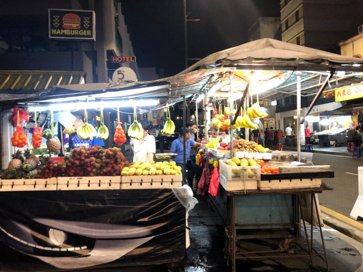 There were lots of vendors selling knock off watches, shoes, handbags, and things like that. We also saw a ton of durian vendors selling the famous stinky fruit that smells (to me) like super gross feet. But Malaysians love it, so David decided to give it a try. He liked it, I tried the tiniest bite and thought it was pretty horrible. Sort of tastes like garlic, onions, and rotting feet. After dinner we walked around to some of the temples in the area and then decided to get some sleep and around 10 headed back to the apartment, again using the free bus.