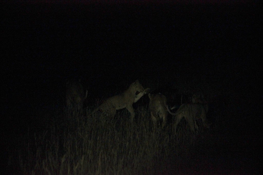 We continued driving and used the ranger’s spotlight to find glowing eyes. The eyes of most animals we were looking for reflect the light, so they are surprisingly easy to find. At first we were finding some cool nocturnal smaller animals, like loads of hares and some smaller rodents, then we saw two species of nocturnal mongoose which I hadn’t seen before. The next hour or so were pretty slow, spotting mainly antelopes with the light. Just when I was starting to lose hope of seeing any cat species, the headlights caught some larger animal crossing the road. Our driver turned off the headlights and approached slowly, and with the spotlight we saw a family of lions crossing the road, and one by one they ran next to our vehicle and looking at us with curiosity. Some of the younger cubs were playing about 40 m from the car, as we watched them with awe. I think there were about six in total, and I was even able to take a few photos with my camera before I headed off into the tall grass.