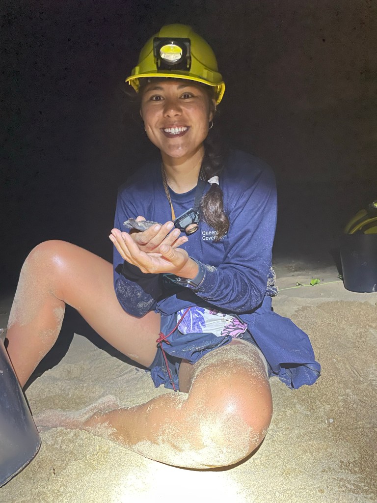 As some of you my know, I am currently in Australia. It was a pretty last-minute trip to be honest, and I was only really sure I was coming until about a week before. I helped mentor a PhD student (previously Master’s student) that is studying turtles at KAUST. As part of her thesis she will need to draw blood from hatchlings, which I have never done so she needed to find someone to train her on this technique. Since turtle nesting and hatching season is in the summer in Saudi Arabia, we were trying to find her somewhere to go this spring, meaning it would likely be somewhere in the southern hemisphere where their summer is our winter. Fortunately for us, on February 7th Australia announced that it would be opening its borders on February 21st. We quickly organized plans and got permission to go for our training, visiting a researcher we had helped with his fieldwork in Saudi Arabia. He is working at Mon Repos, which is a pretty famous turtle nesting beach in Queensland.
