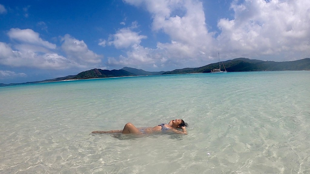 Our last stop was down below to the beach we were just admiring, where ee had a delicious lunch. Our day package included lunch, so we ate on the beach as fast as we could so we could get back into the sea. Next to where the boat anchored there were loads of stingrays that we wanted to see. I grabbed my snorkel mask and saw dozens of these amazing stingrays that were hanging out in the shallows. We also walked along to the next beach where we had a little photoshoot with the stunning beach in the background. This was probably one of my favorite days in Australia, we were so happy and thriving in the sunshine.