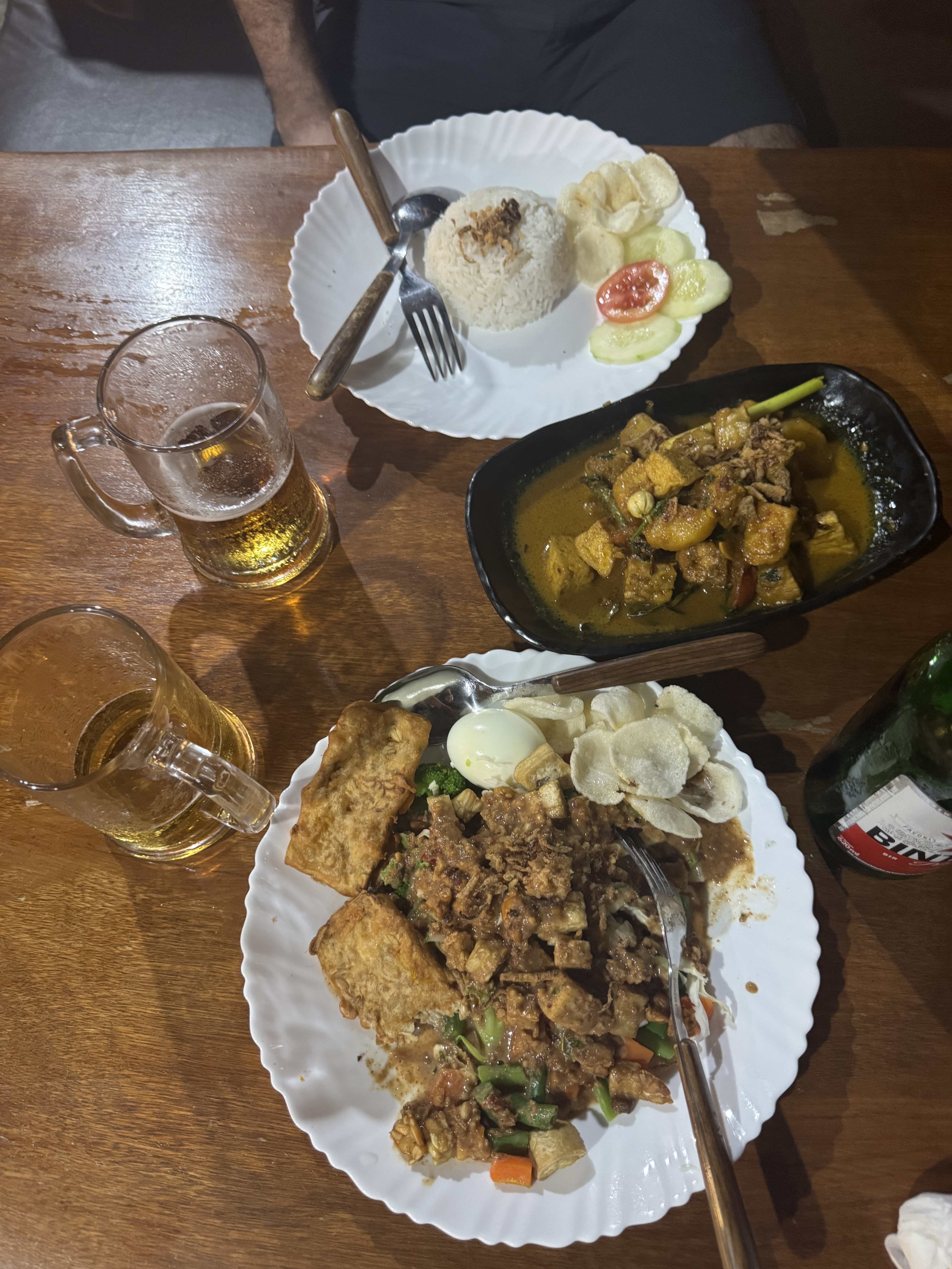 Dinner that night was another standout—tempeh gado gado and veg curry, both insanely good. The staff were so sweet—they brought out a guitar and sang to us as we ate. It was such a warm, memorable way to end the trip. Honestly, it was some of the best vegetarian food I’ve ever had in Indonesia.